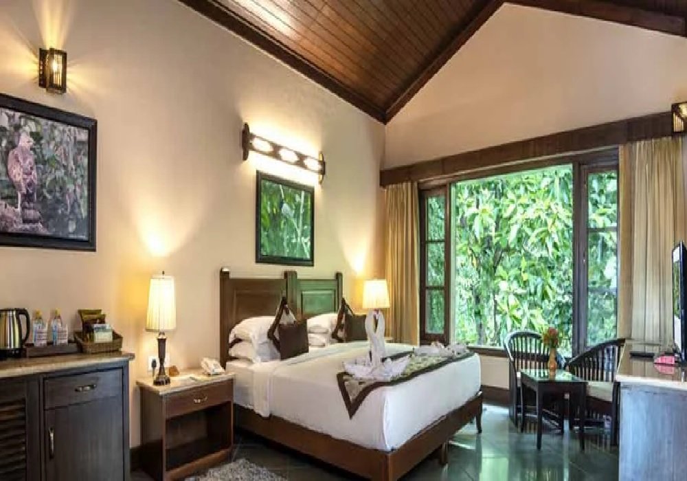 - Corbett Club Room – Elegant rooms with king-size beds, private balconies, and forest-facing views.