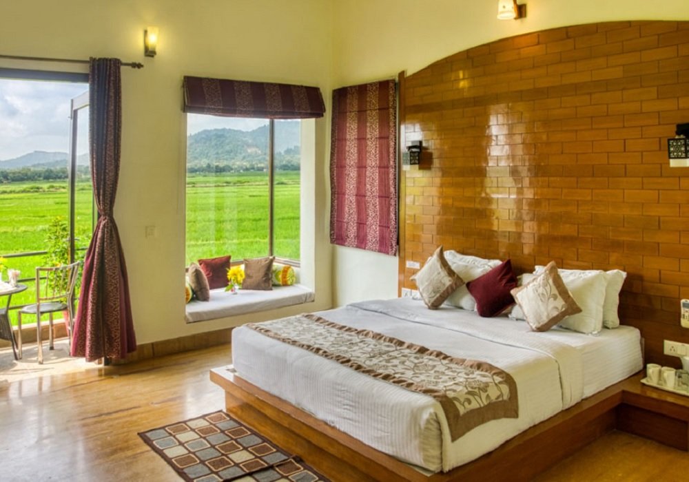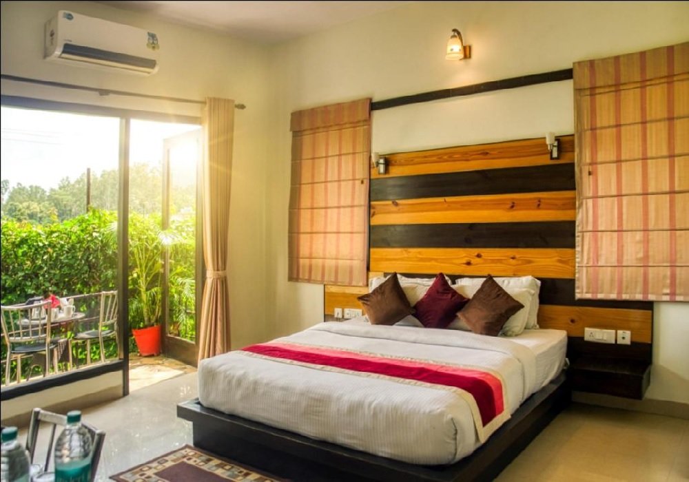The resort offers a variety of well-designed rooms, suites, and cottages equipped with modern amenities. Each room includes air conditioning, Wi-Fi, flat-screen TVs, tea/coffee makers, mini-bars, and private balconies or sit-outs with forest or river views. Families can opt for spacious suites, while couples often choose cottages or premium rooms for a more romantic and secluded experience. Elegant interiors and cozy furnishings ensure a comfortable stay for all guests.