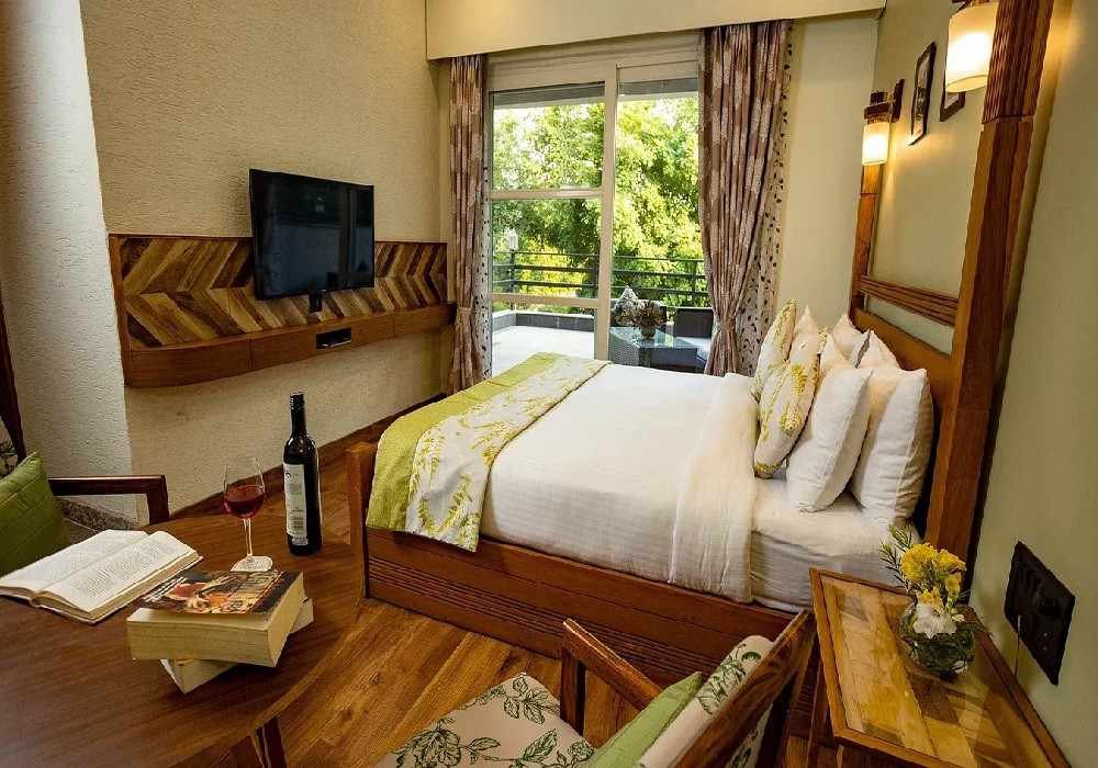 The resort offers a variety of well-appointed rooms, suites, and cottages designed for luxury and comfort. Each room features air conditioning, Wi-Fi, flat-screen TVs, mini-bars, tea/coffee makers, and private balconies or sit-outs overlooking the forest or river. Families can opt for spacious suites, while couples often choose private cottages or premium rooms for a romantic and secluded experience. Interiors are thoughtfully designed to provide modern elegance with cozy comfort.